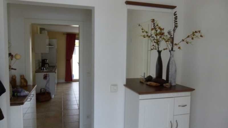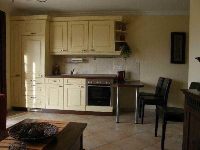 Die Ferienwohnung befindet sich im Obergeschoss des Hauses. Am geräumigen Wohnraum mit integrierter Küchenzeile befindet sich ein Balkon. Die Küchenzeile ist mit Geschirrspüler, einem Cerankochfeld mit 4 Kochmöglichkeiten und einem Backofen ausgestattet. Im Wohnbereich bieten TV und DVD Player, neben einem stilvoll eingerichteten Ambiente, Erholung und Entspannung. Das Badezimmer ist mit Dusche ausgestattet.